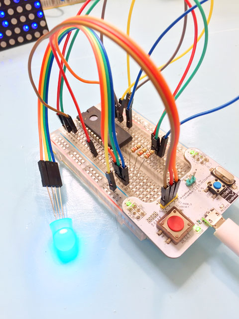 とても小さいくとてもピッチが狭いので、正しくハンダでついているか、となりどうしが間違ってつながっていないか、最後に人の目で一つ一つ確認してくれています。いくら機械の精度が高くても、ある確率ではミスが発生してしまうので、最終的には人が確認が必要なんですね。