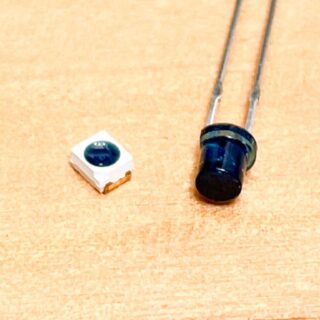 今回はdp18を使っているので、ブレッドボードの右側の11行目にLEDの足の長い方を挿して、LEDの短い足を青いグランドの電源ラインに挿します。LEDは青か白を使いましょう。青を使う理由はこちらを参考にしてください。