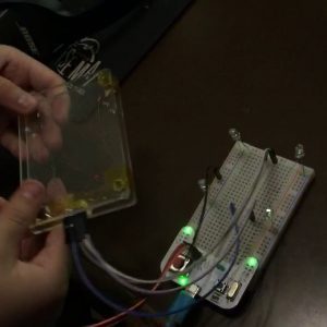昨日の作ったスイッチと板でできたタッチパットをマイコンにつないで、板のどの辺が押されたかを認識するプログラムを作りました。