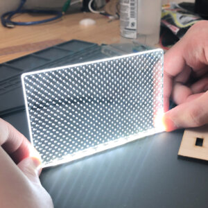 こちらが完成した任天堂スイッチのスタンドです。下にある台は以前レーザーカッターで作ったミニテーブルです。