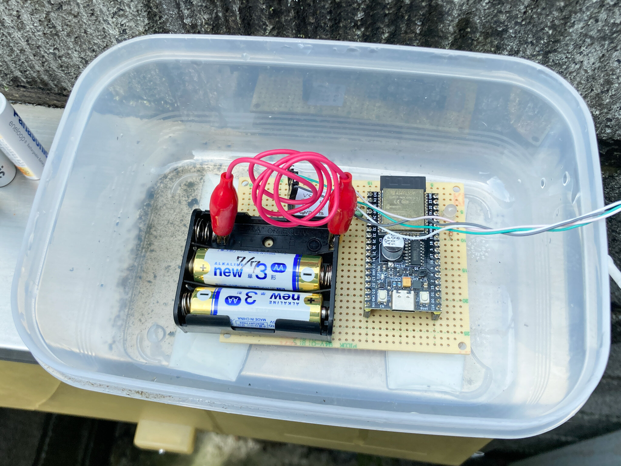 乾電池2本で2ヶ月運用できることがわかったので、次回は太陽電池で半永久的に動作するように改造してみまたいと思います。