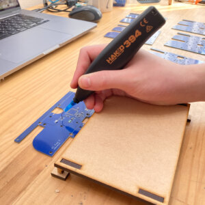 赤の線をコネクタのセンターに、黒の線をコネクタの外側にはんだ付けします。