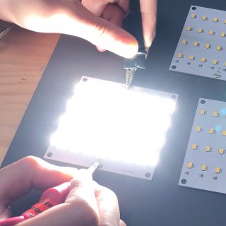 太陽光のようなフルスペクトラムの光を発生させるLEDを入手しました。このLEDは複数のLEDチップが1つのパッケージに入っているCOBのタイプで、光らせるためには34〜38Vの電圧が必要です。