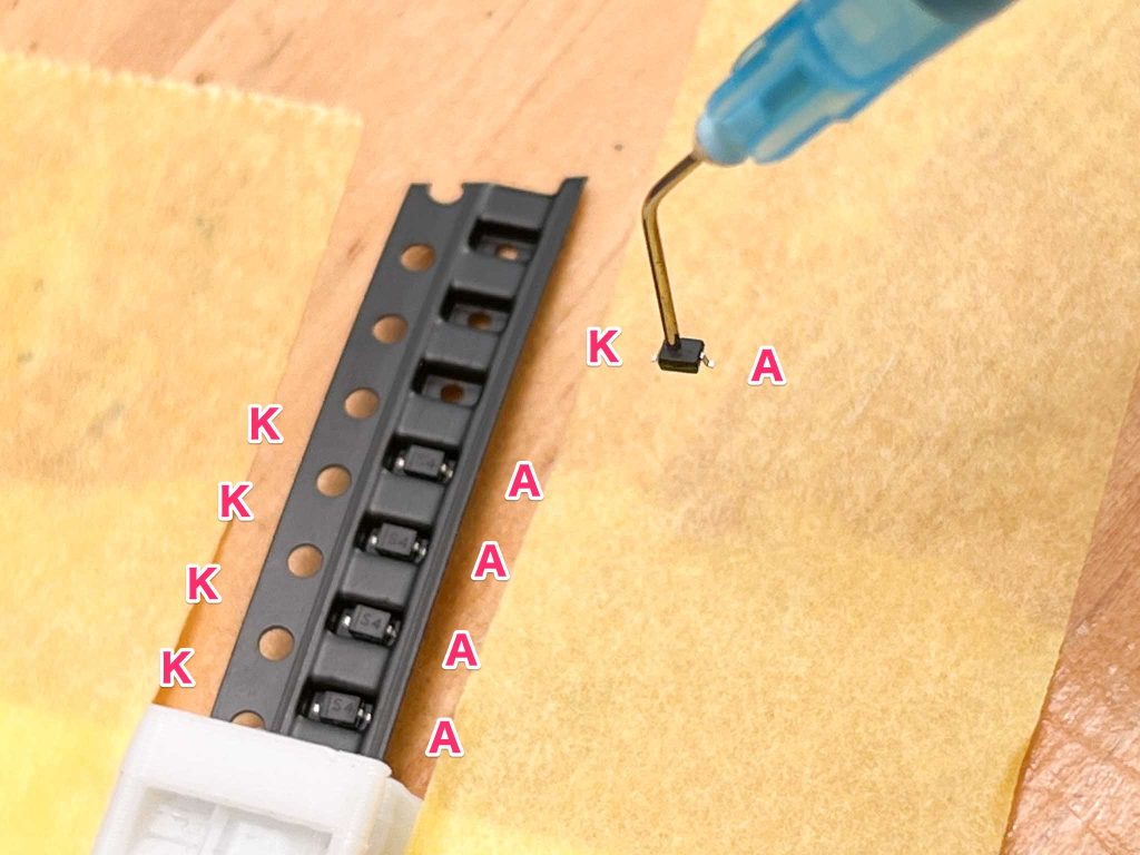 吸着ピンセットを使うことで、ピンセットよりも断然早く実装が完了します。