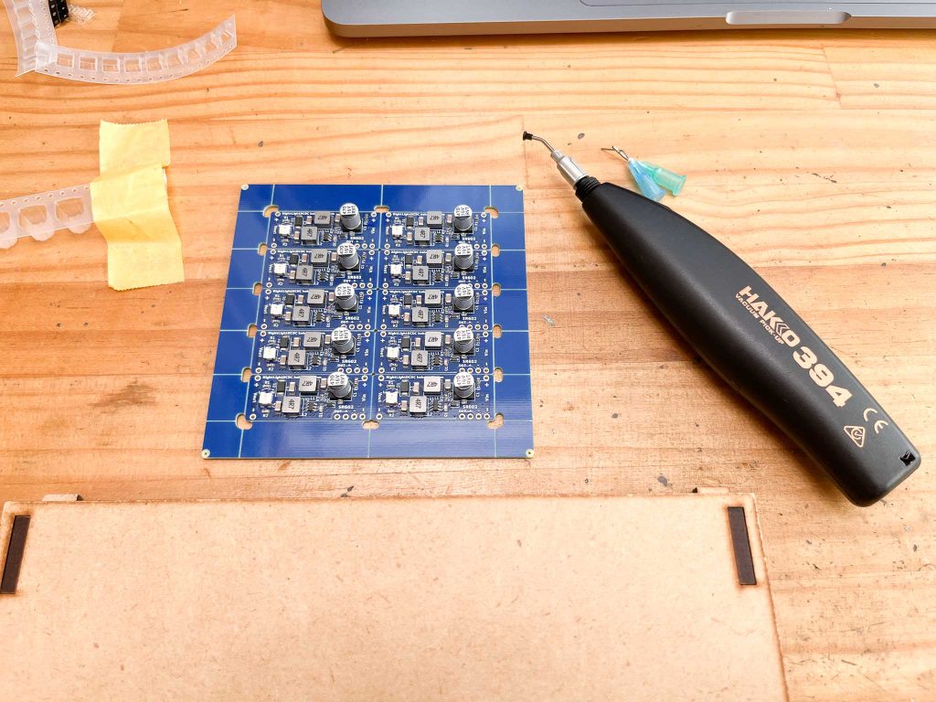先日設計したソーラーライトDCDCの基板が届きました。早速組み立ててみましょう。