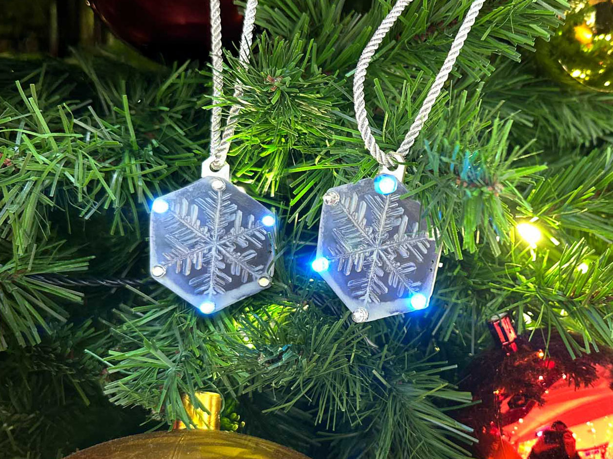 電子工作 プレゼントもあるよ!雪の結晶のクリスマスオーナメントが完成しました