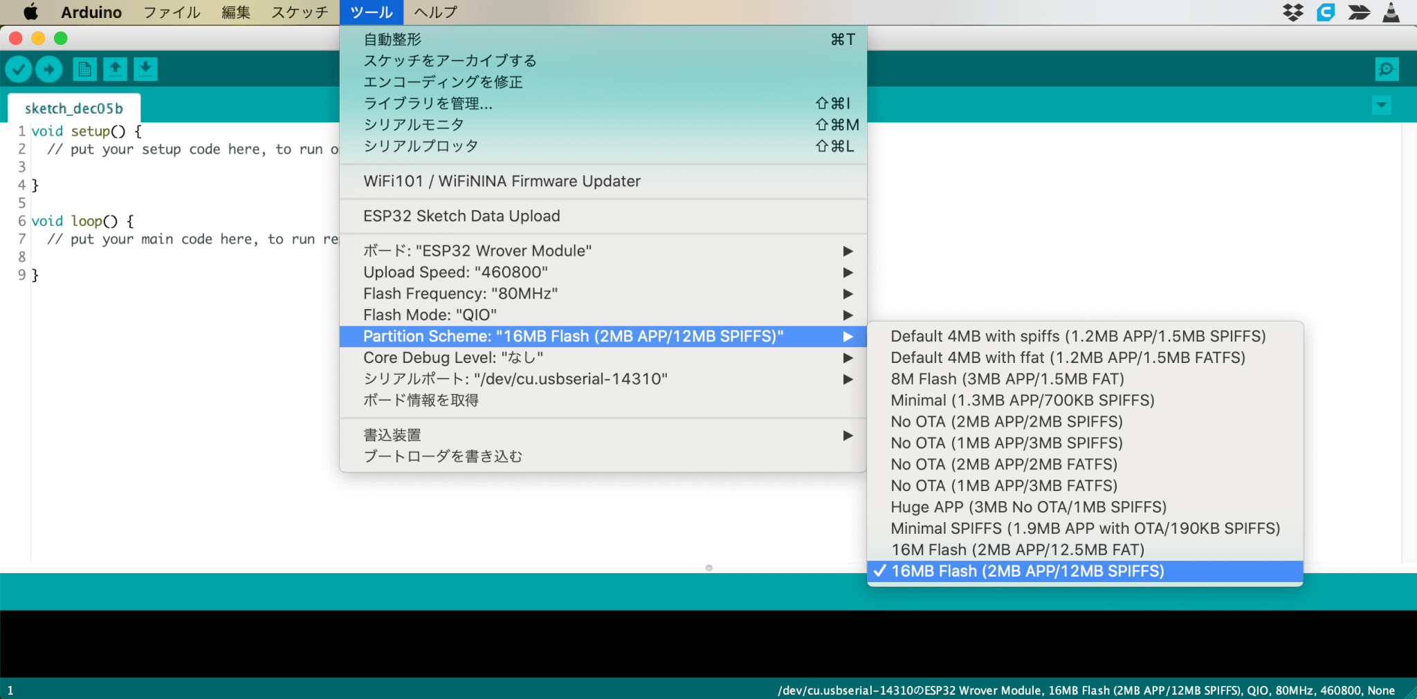 電子工作 16MBフラッシュのESP32-WROVERでSPIFFSを最大限使えるようにする設定方法